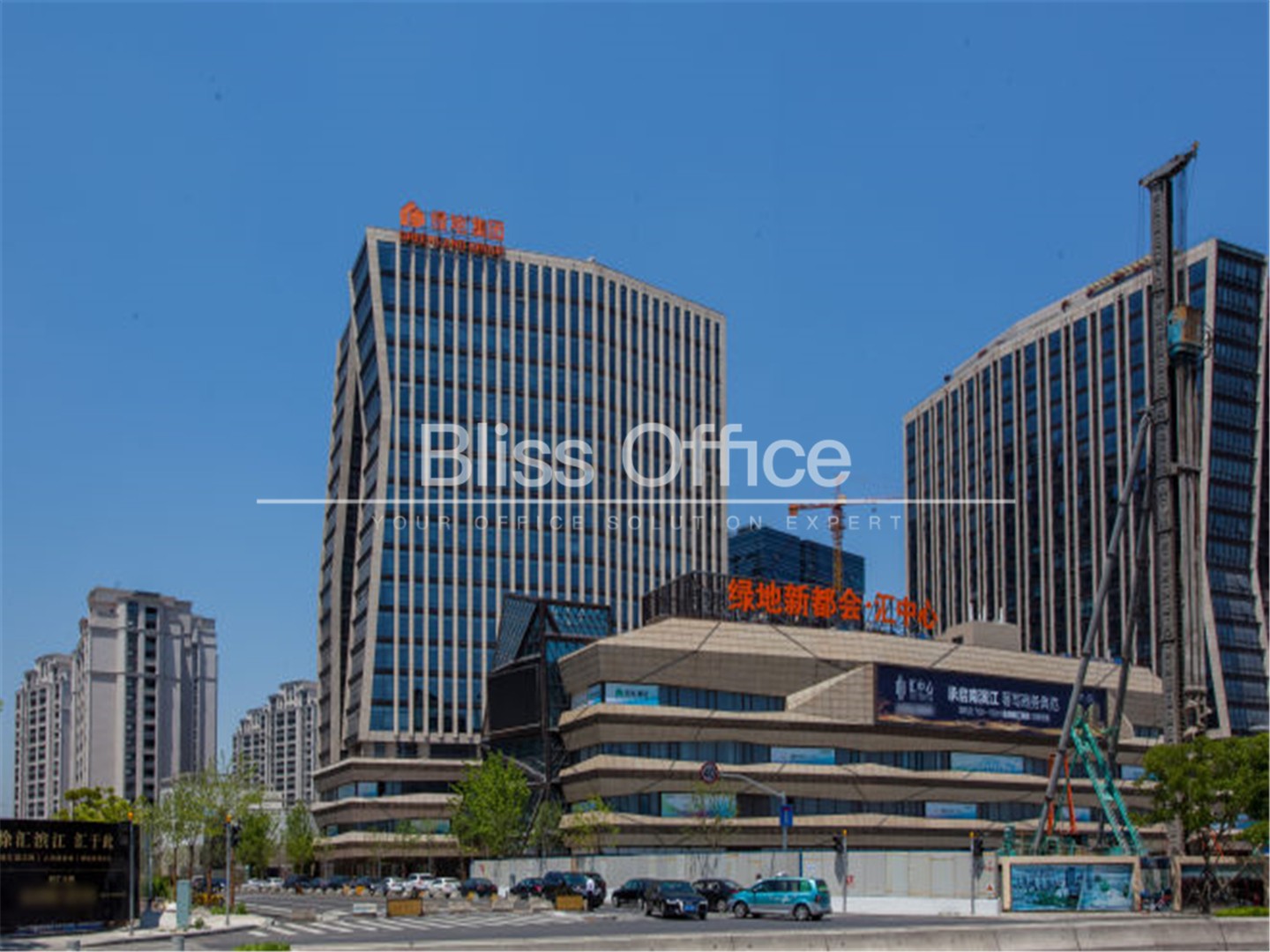 绿地汇中心,位于黄浦江边,前滩板块,配合上海市政府南滨江商业圈规划,区域内1座5A甲级写字楼,1座准甲级写字楼,及配套近1.8万平米商铺,配有2.8万方高端商业,坐拥一环、两桥、三隧,扼守徐汇滨江交通咽喉。