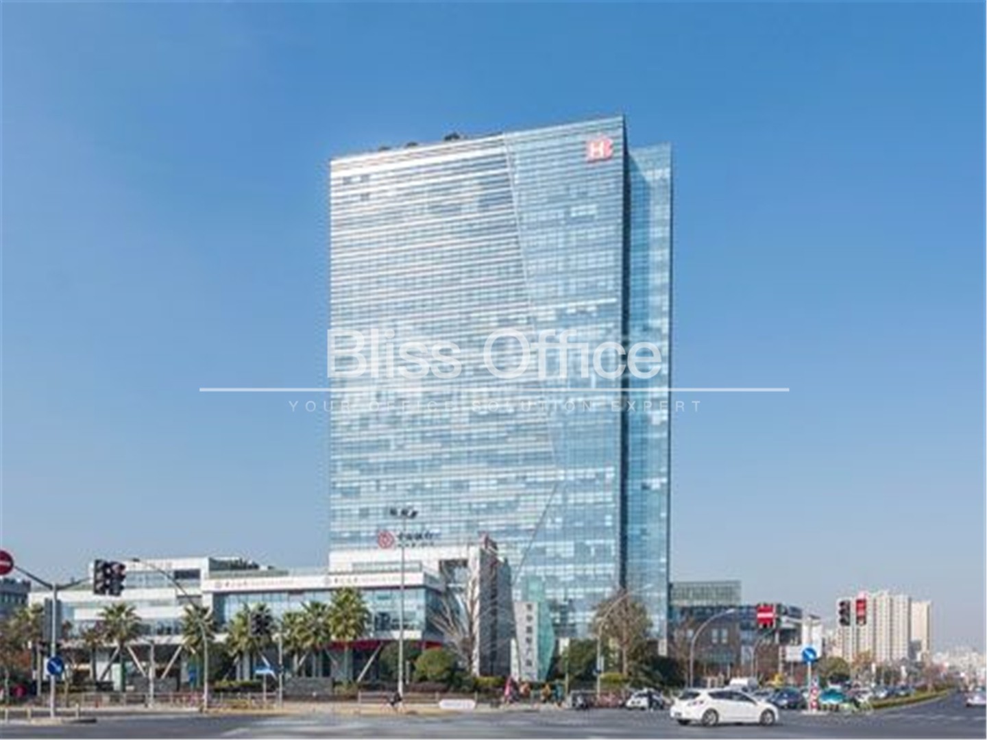 该项目总建筑面积为56467.9平方米,由一栋25层办公楼和6栋2~3层小办公楼组成。项目利用高差的设计和各建筑之间的空隙,将下沉庭院与南侧的城市绿化及大宁绿地连为一体,打造出安静怡人的办公环境。